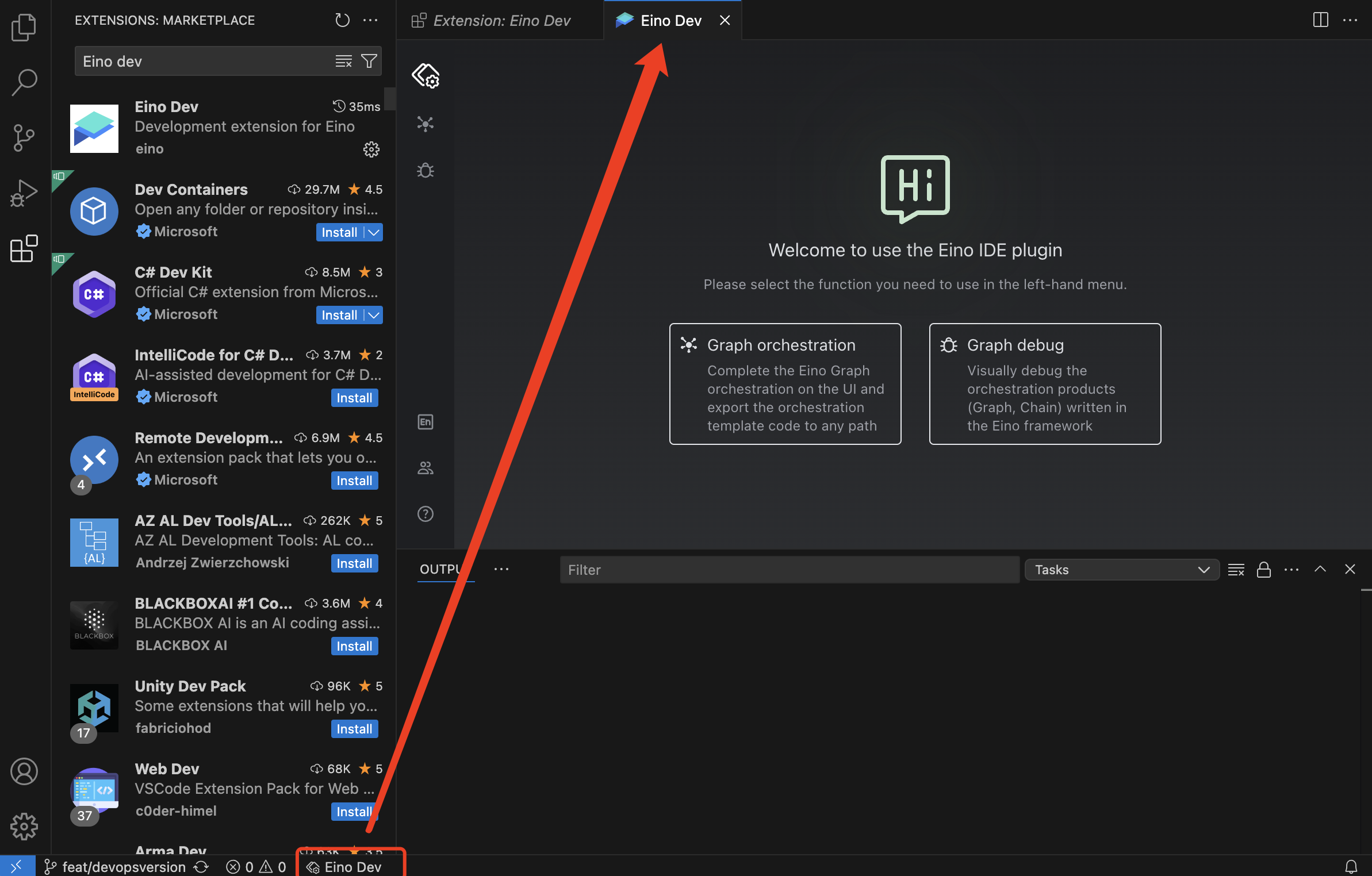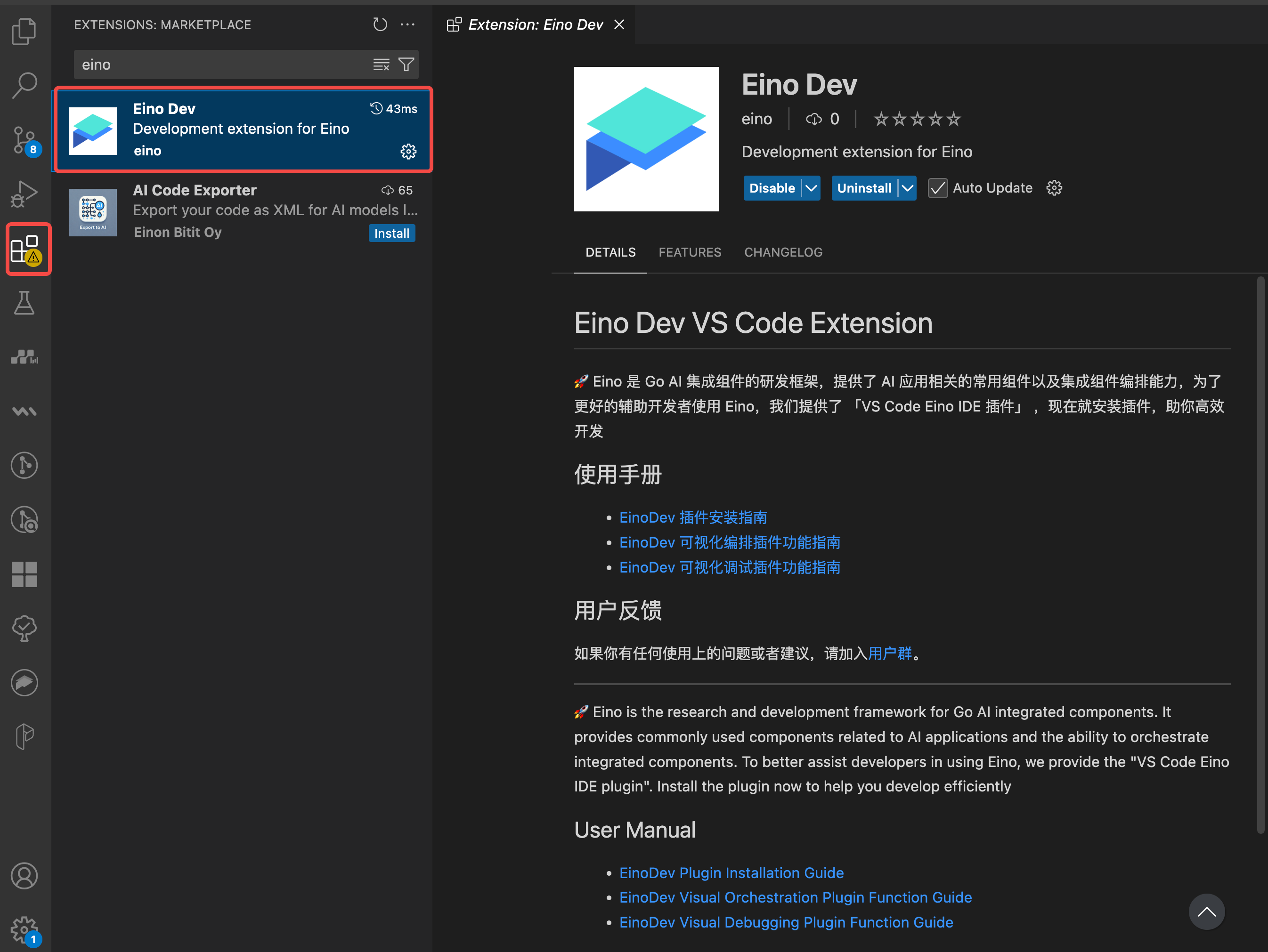 • Search for Eino Dev in Marketplace and install