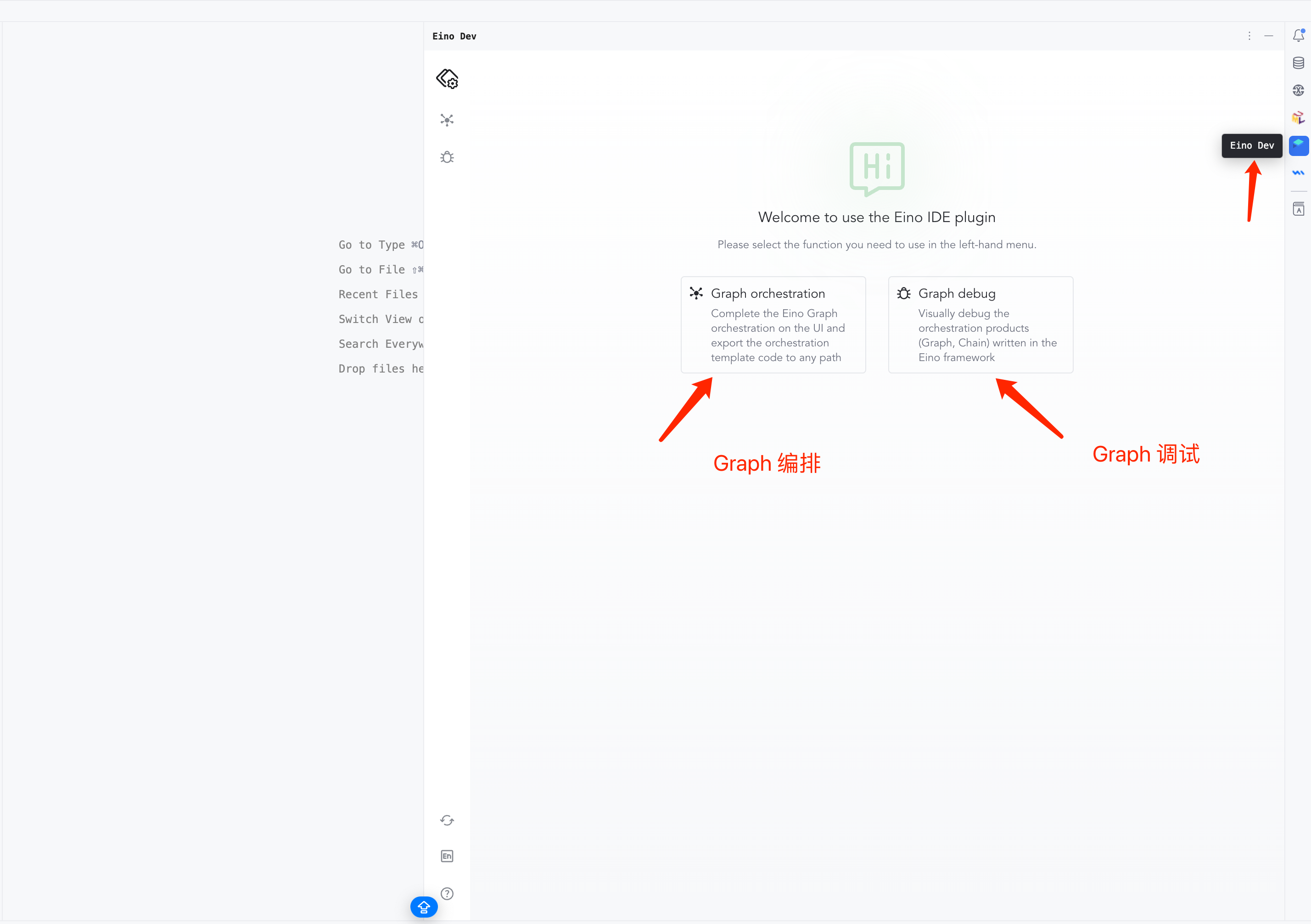 • Find the “Eino Dev” icon in the right sidebar and click it: