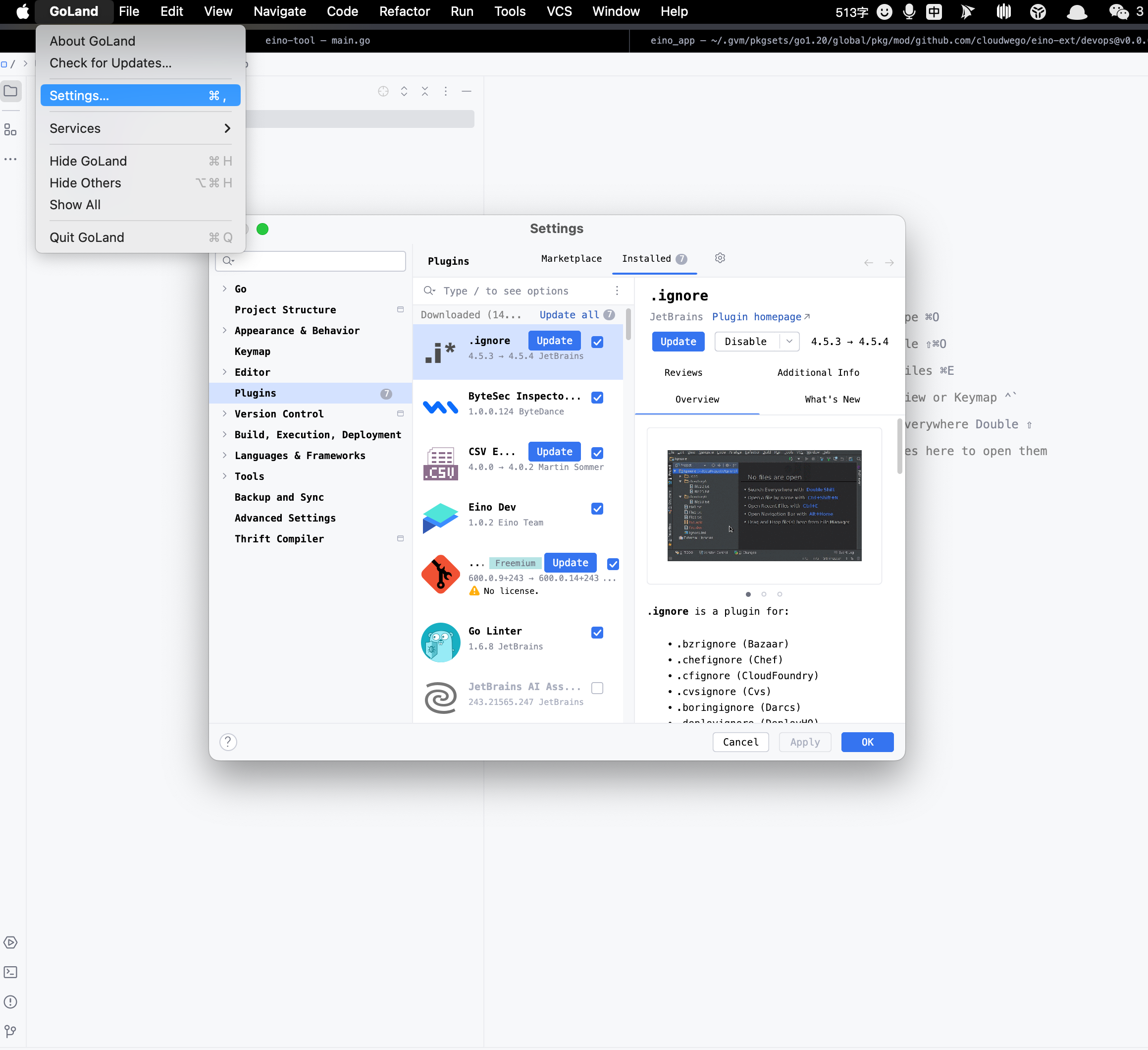 • Open GoLandSettingsPlugins