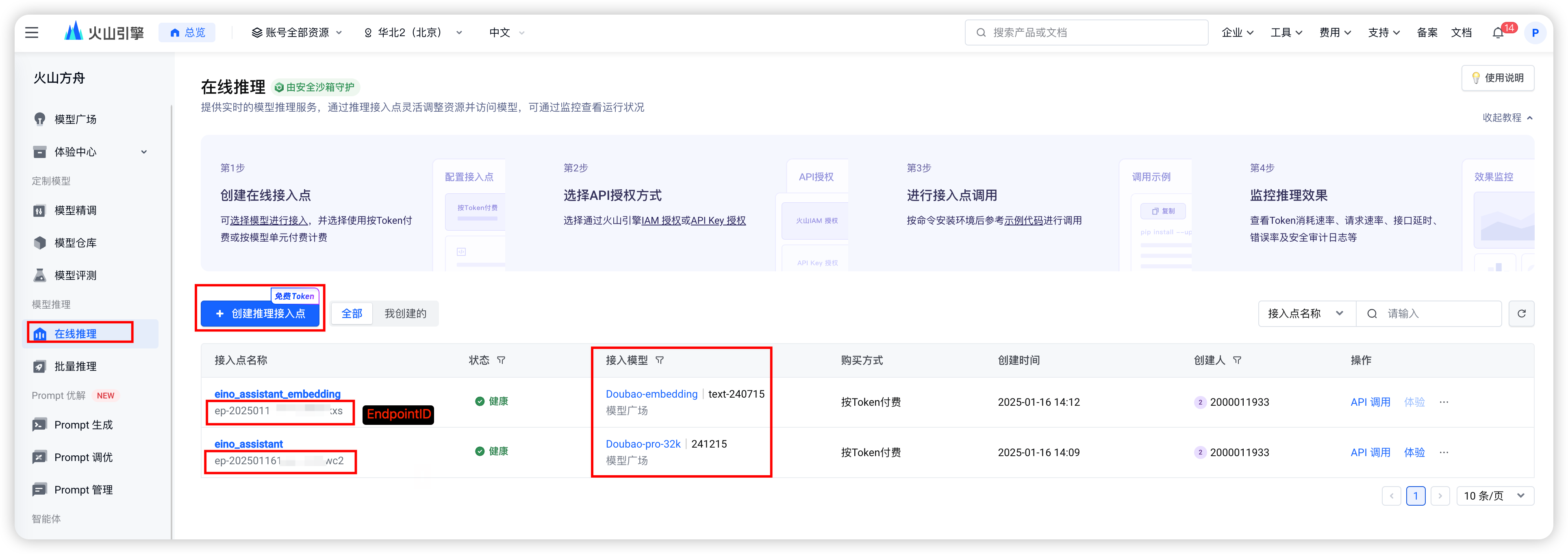 • 「火山引擎在线推理」:https://console.volcengine.com/ark